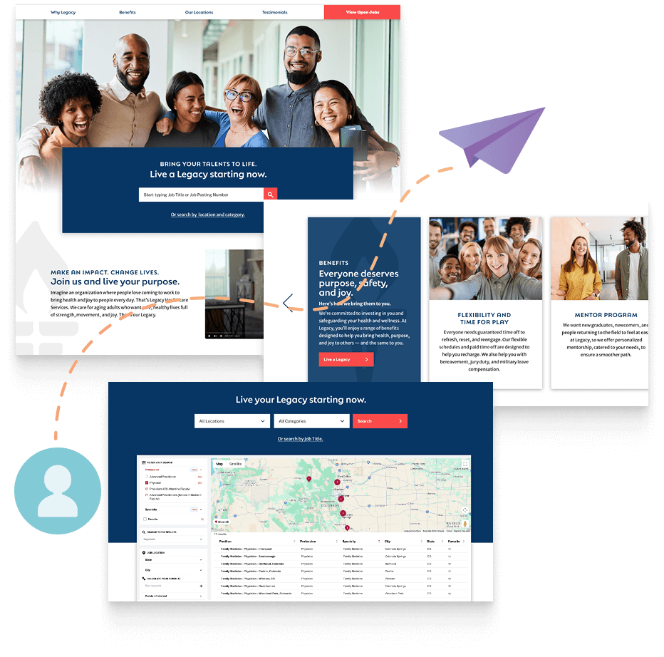 Not all candidates think or search the same way for a job. Guide them with pathways and pages based on role, location, career stage and more so that they can quickly find what they care about most.